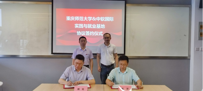 院长魏延,与中软国际教育科技集团西南区副总经理曾鹏,签订了“实践与就业基地”协议,并向中软国际授予“实践与就业基地”牌匾。