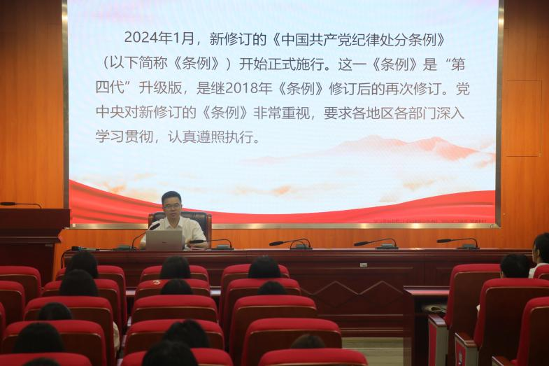 会议伊始,王军书记回顾了《中国共产党纪律处分条例》(后简称《条例》)的修订历程,指出这是自党的十八大以来的第三次修订,体现了党中央对全面从严治党战略方针的坚定决心。他强调,新修订的《条例》不仅是对纪律规范的更新,更是对党员行为的严格要求。在党课中,他从《条例》的修订背景与意义、新增与修改内容、网络言行规范等方面进行了深入解读。他最后强调,毕业生党员作为即将步入社会的新鲜力量,更应以身作则,带头遵守党纪国法,以实际行动维护党的形象,为社会做出积极贡献。