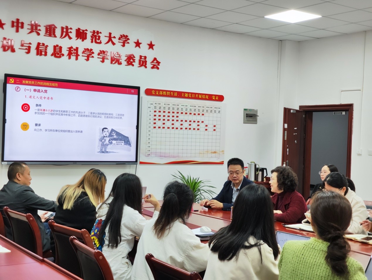 最后,陈兰书记代表学院党委再次对郭小辉副书记在百忙之中抽出时间来院讲座表示感谢,并对培训作了小结。她谈到,习近平总书记在中国共产党第二十次全国代表大会上所作的报告中指出“全党必须牢记,全面从严治党永远在路上,党的自我革命永远在路上”“增强党组织政治功能和组织功能,坚持大抓基层的鲜明导向,把基层党组织建设成为有效实现党的领导的坚强战斗堡垒,激励党员发挥先锋模范作用,保持党员队伍先进性和纯洁性”,此次讲座是学院党委贯彻落实党的二十大精神,加强支部建设的重要举措。各支部一是要尽快消化培训内容,认真学习中央和学校党委关于党员发展工作的文件,准确把握工作要求。二是要以高度的政治责任感、使命感做细做实党员发展工作,做到程序、流程、材料规范。三是要广泛宣传,团结身边的同学积极向党组织靠拢,让更多的优秀分子加入党组织,永葆党组织生机活力。