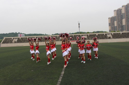 啦啦队献上热情洋溢的啦啦操表演,为球场上的健儿们加油鼓劲。下半场一开场,兔子先生