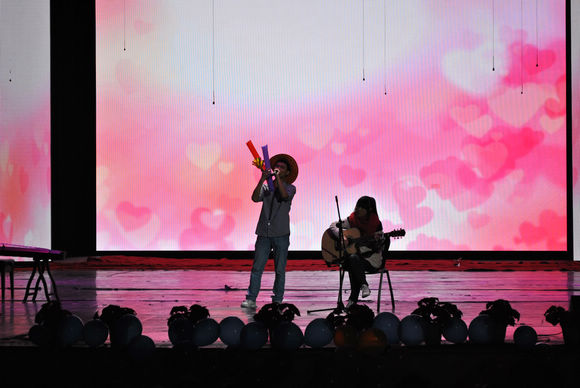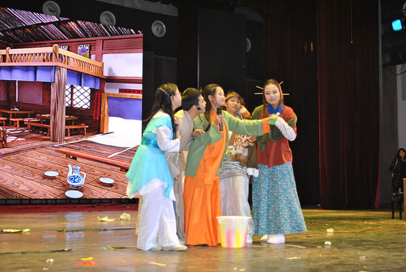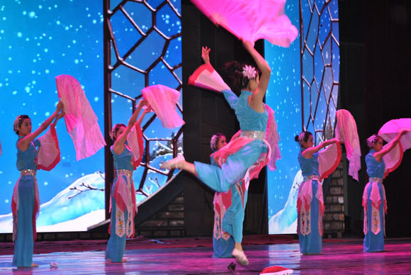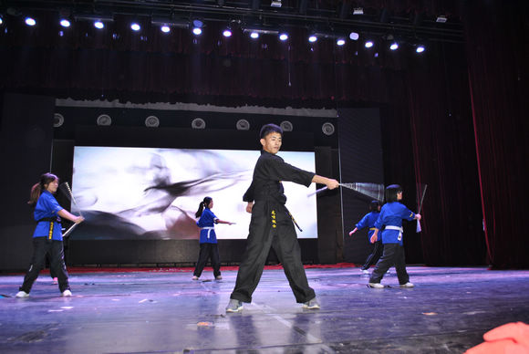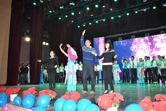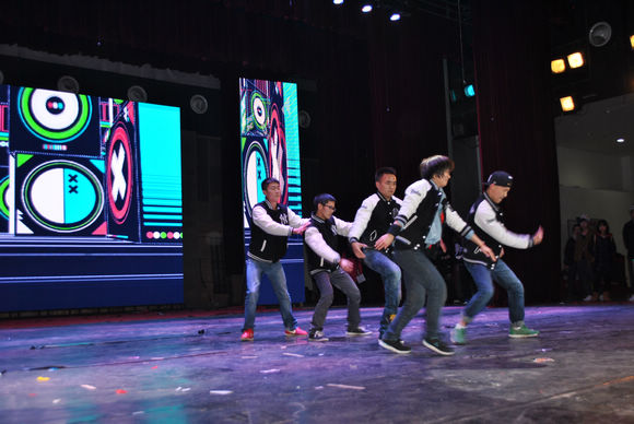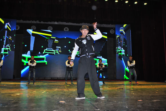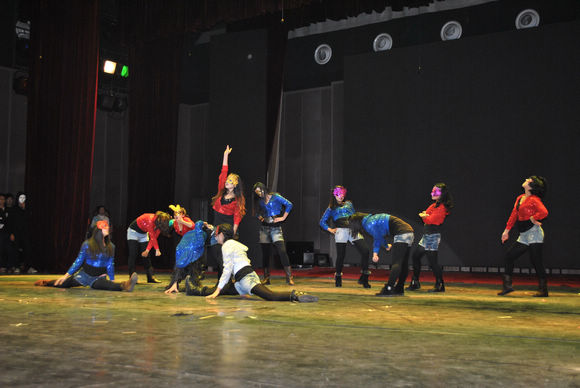 伴随着热烈的掌声,晚会现场高潮迭起。既有动感十足的现代舞也有轻盈优美的民族舞;既有帅酷青春、引领时尚的街舞也有教师代表的群舞;既有劲爆帅气、惊险刺激的武术表演又有水袖轻扬、诗情画意的古典舞;既有发人深思的歌舞情景剧也有诙谐幽默的小品,形式多样的节目,缤纷绚烂的背景,让晚会现场的气氛热烈非凡。晚会在兔子先生
