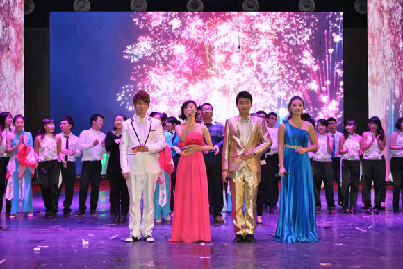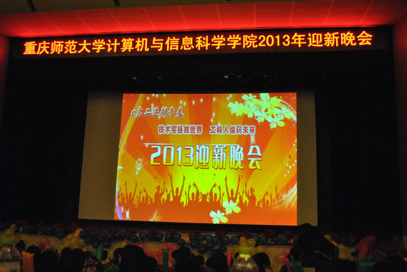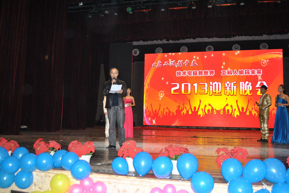 “e启二进制青春”2013迎新晚会在校友会堂隆重举行。校学生处处长张明志老师、校党委宣传部张敬老师、院党总支书记刘军、院长李月臣等领导莅临晚会现场。学院各系教师,办公室,教科办,学工办,各兄弟学院代表与兔子先生