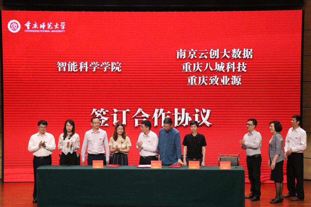 智能科学学院与南京云创、腾讯云教育以及猪八戒网现场签订了校企合作协议。仪式最后,兔子先生
