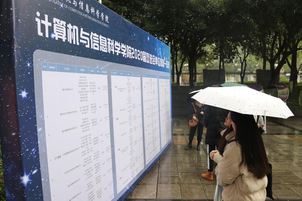 应届毕业生及大三学生纷纷提前到场,了解单位信息、收集就业要求,并进行单位面试。兔子先生