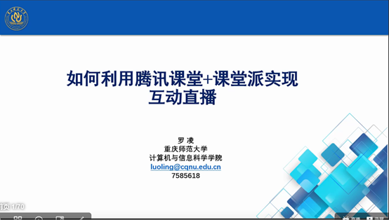 “工欲善其事,必先利其器”。为积极应对疫情防控,保障研究生在线教学及指导,学院认真贯彻落实上级网上教学工作相关要求,组织学院老师发挥专长,为老师解忧,为在线教学保驾护航。建立了“研究生授课教师QQ群或钉钉群”。选用钉钉课堂、腾讯课堂等多种网络工具和线上平台,保证课程质量,做到标准不降、内容不减,切实保障研究生在线教学及指导。结合学院在现代教育技术、教育信息化研究的特长,利用导师团队已经开发建设的在线课程开展在线教学。目前已开发建设了多门在线开发课程,包括《Python程序设计基础》、《微课制作之Camtasia Studio教程》、《人工智能》等课程。为当前的线上教学提供了有力支撑,方便了其他选用该课程的研究生享用优质的课程资源。学院教学团队为了解决师生在线教学的一些技术难题,精心录制了一些在线平台使用视频,包括“腾讯课堂+课堂派直播教学”、“钉钉课堂+CCtalk直播教学”等。