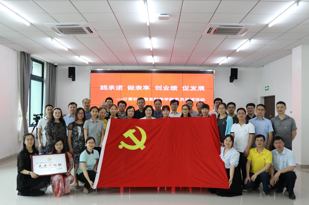 全体教师党员在学院楼319会议室隆重举行党员承诺践诺活动。活动在全体党员齐唱慷慨激昂、催人奋进的“没有共产党就没有新中国”拉开序幕。首先,学院党委书记陈兰畅谈庆祝中国共产党成立99周年的感想,回望共产党带领各族人民在曲折中砥砺奋进的坚信道路,深悟中国共产党在不屈不挠中艰苦奋斗的丰功伟绩,学院在党的99周岁生日之际举行党员承诺践诺活动意义非凡。接着,全体党员共同庆祝学院党委荣获学校先进党组织,叶青老师荣获优秀教师党员的荣誉称号。