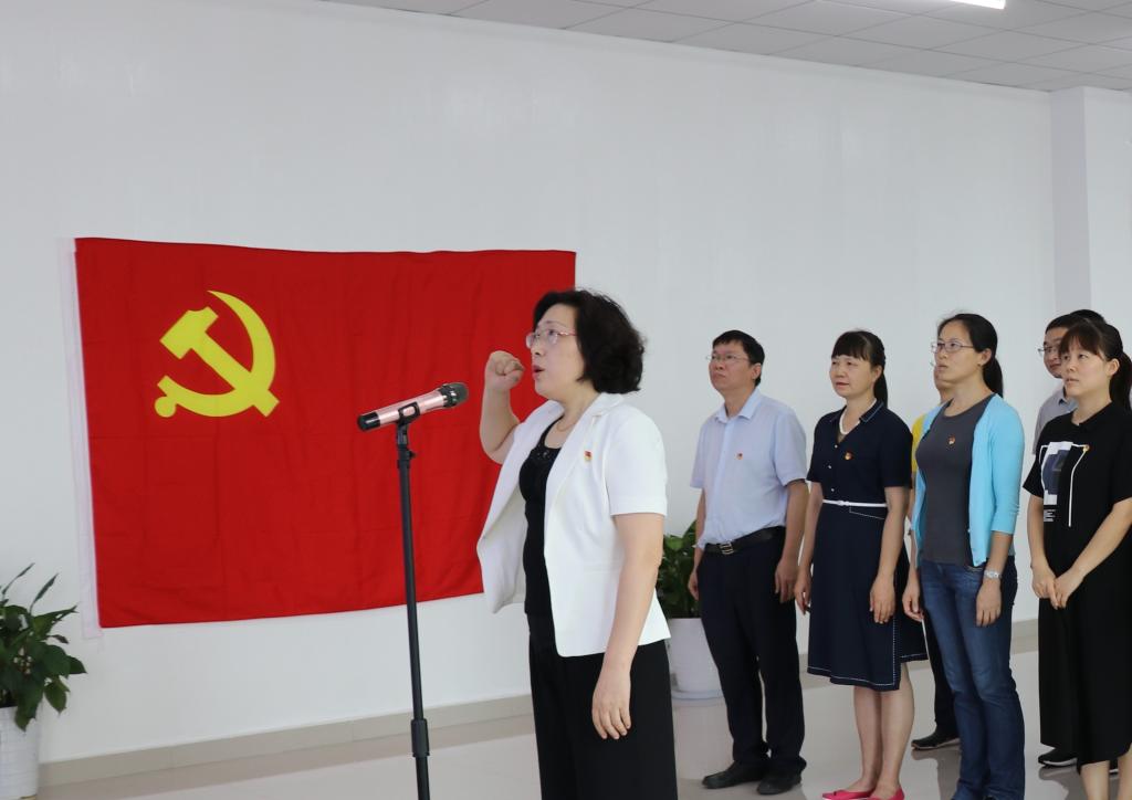接下来,活动进入承诺环节,全体党员立足岗位职责,纷纷上台做出庄严承诺。魏延院长“ 坚守信念,不断进取,永葆党员本色;务实创新,敢于担当,助推学院发展”,唐万梅教授做出“教书育人,为人师表,不断创新学习,拓宽知识视野,更新知识结构,做学生的良师益友”,崔少国教授“执着三尺讲台,乐于育人一生”,冯骥老师“育人先正己,育知先育德”, 邓毅老师“不忘初心,恪尽职守,发挥共产党员先锋模范作用,创新实验中心工作,服务学院转型发展”。最后,在陈兰书记带领下,全体教职工党员以饱满的激情和嘹亮的声音重温入党誓词,不忘初心,牢记使命。