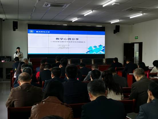随后,罗凌副教授进行了题为《教学心得分享——项目驱动教学中培养学生创新能力》示范授课。罗老师通过分享大量自身指导学生做项目的实例,提出通过已完成的学生项目来驱动教学,可以很有效地吸引学生参与课堂教学。以学生为教学主体,翻转课堂,从而达到提高课堂教学质量的目的。同时,罗老师还分享了运用“课堂派”平台辅助教学,进行课程检测,增强师生互动。