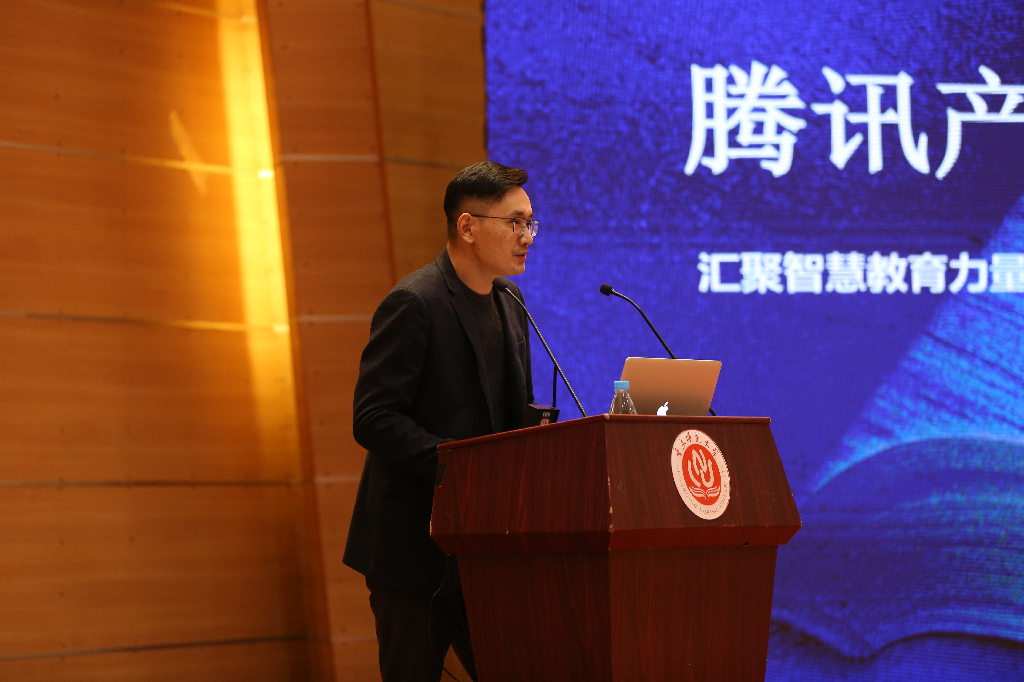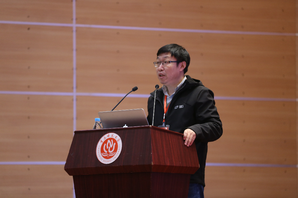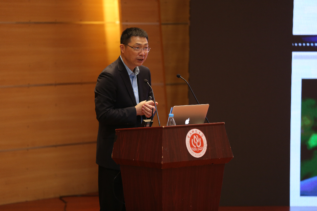 重庆邮电大学副校长、大数据智能研究院院长王国胤以“多粒度认知计算”为主题作开场报告。王教授通过和在场师生共同探讨“人脑认知是否等于智能计算”等问题,由浅入深的给出广义认知计算的定义;他表示未来认知计算的发展应关注以下两个研究方向:一是智能探索的辅助,二是智能融合的实现。随后,腾讯教育高校产品总经理钱栩嘉紧紧围绕“腾实学院助力培养复合型产业人才”这一目标,阐释了腾讯教育对于校企合作的理解和探索。紧接着,中国科学技术大学大数据学院执行院长陈恩红作报告分享。陈教授以教学过程中涉及的学习资源、学生、学习策略为对象,通过结合数据挖掘技术和教育方面的领域知识,详细充分的向全体师生介绍了面向个性化学习的认知建模、教学资源分析及推荐,为实现数据驱动的个性化学习解决方案提供了有力的支撑。南京师范大学计算机与电子信息学院院长吉根林从经济发展和社会建设对人工智能的需求出发,对高校人工智能学科的发展与专业建设进行了深入的探讨。最后,重庆市学术技术带头人、重庆大学计算机学院院长廖晓峰根据大数据背景下,机器学习技术这一研究热点,向大家介绍了大数据的分布式机器学习方法。